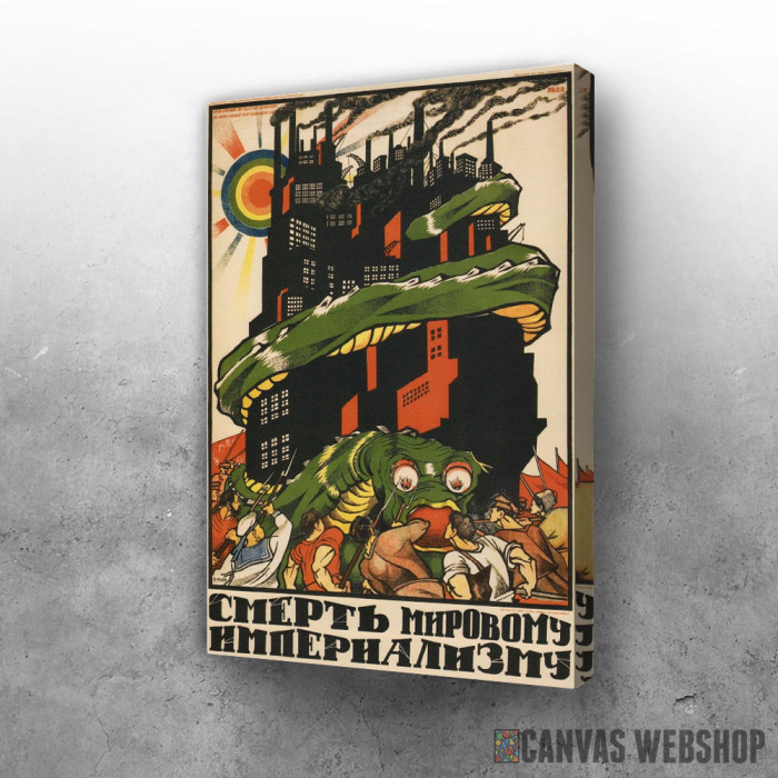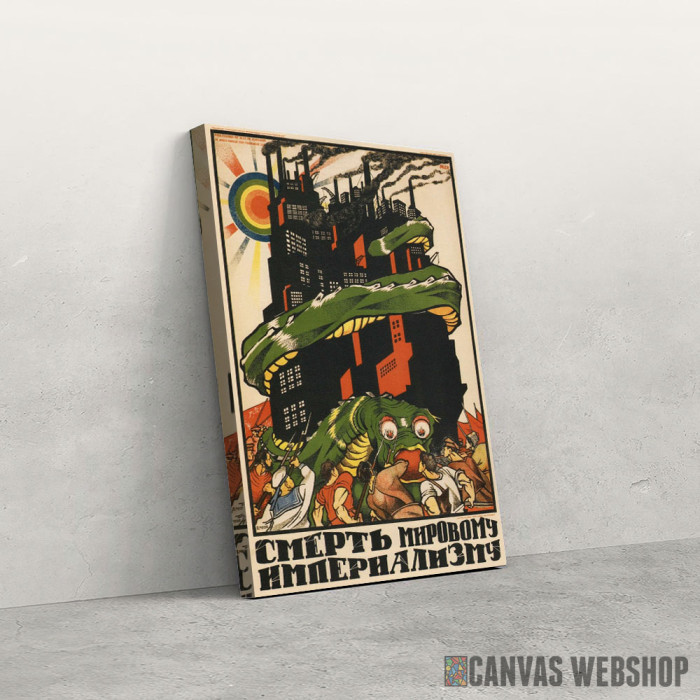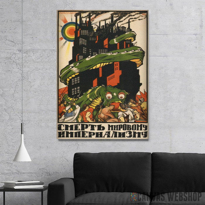 Smrt imperializmu je slika odštampana na kvalitetnom pamučnom platnu koje je zategnuto na ram od bukovog drveta. Slika Smrt imperializmu je dostupna u različitim dimenzijama.