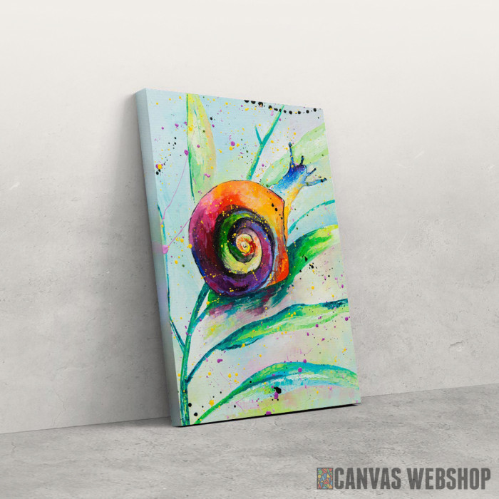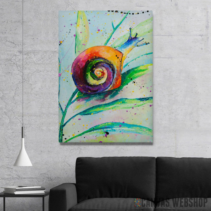 Snail je slika odštampana na kvalitetnom pamučnom platnu koje je zategnuto na ram od bukovog drveta. Slika Snail je dostupna u različitim dimenzijama.