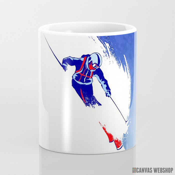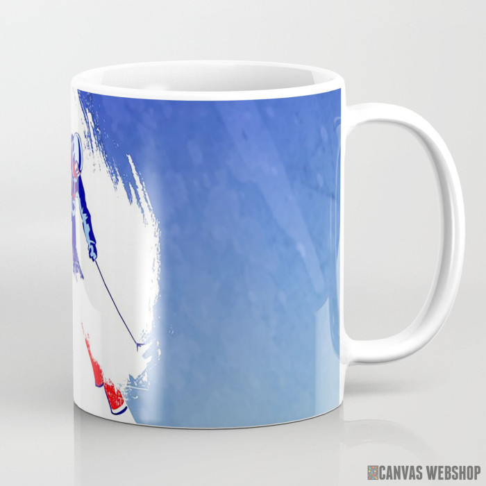 Keramička šolja sa slikom Snežni prah ljudima - skijanje.