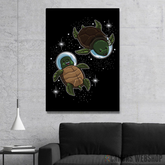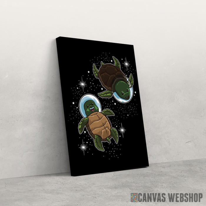 Space Turtles je slika odštampana na kvalitetnom pamučnom platnu koje je zategnuto na ram od bukovog drveta. Slika Space Turtles je dostupna u različitim dimenzijama.