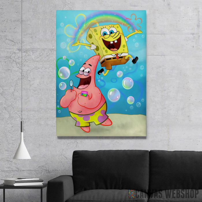 Spongebob Squarepants je slika odštampana na kvalitetnom pamučnom platnu koje je zategnuto na ram od bukovog drveta. Slika Spongebob Squarepants je dostupna u različitim dimenzijama.