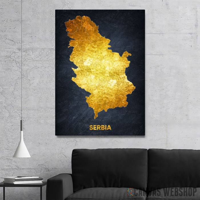 Srbija mapa je slika odštampana na kvalitetnom pamučnom platnu koje je zategnuto na ram od bukovog drveta. Slika Srbija mapa je dostupna u različitim dimenzijama.