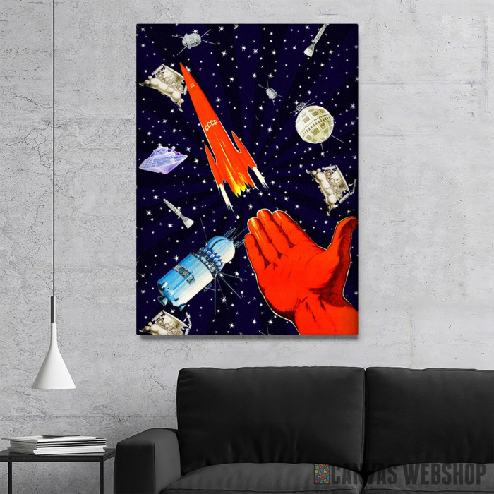 SSSR svemirski program je slika odštampana na kvalitetnom pamučnom platnu koje je zategnuto na ram od bukovog drveta. Slika SSSR svemirski program je dostupna u različitim dimenzijama.
