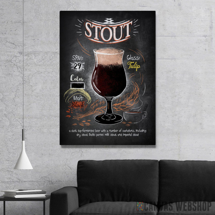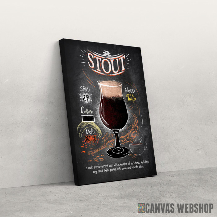 Stout je slika odštampana na kvalitetnom pamučnom platnu koje je zategnuto na ram od bukovog drveta. Slika Stout je dostupna u različitim dimenzijama.