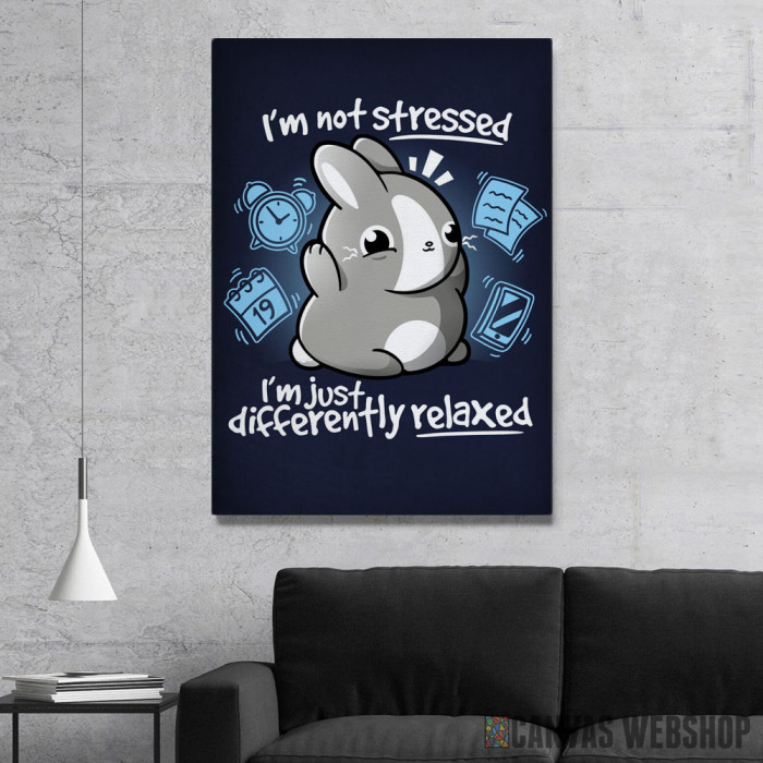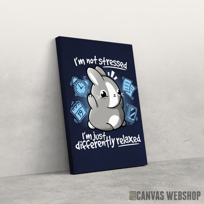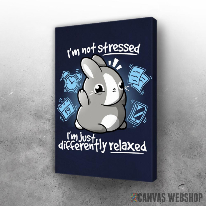 Stressed bunny je slika odštampana na kvalitetnom pamučnom platnu koje je zategnuto na ram od bukovog drveta. Slika Stressed bunny je dostupna u različitim dimenzijama.