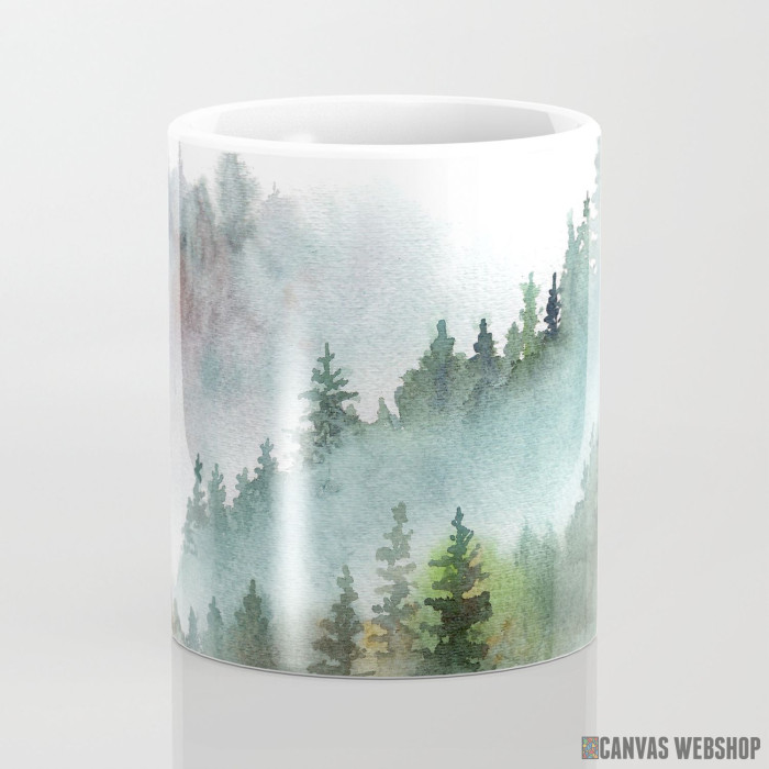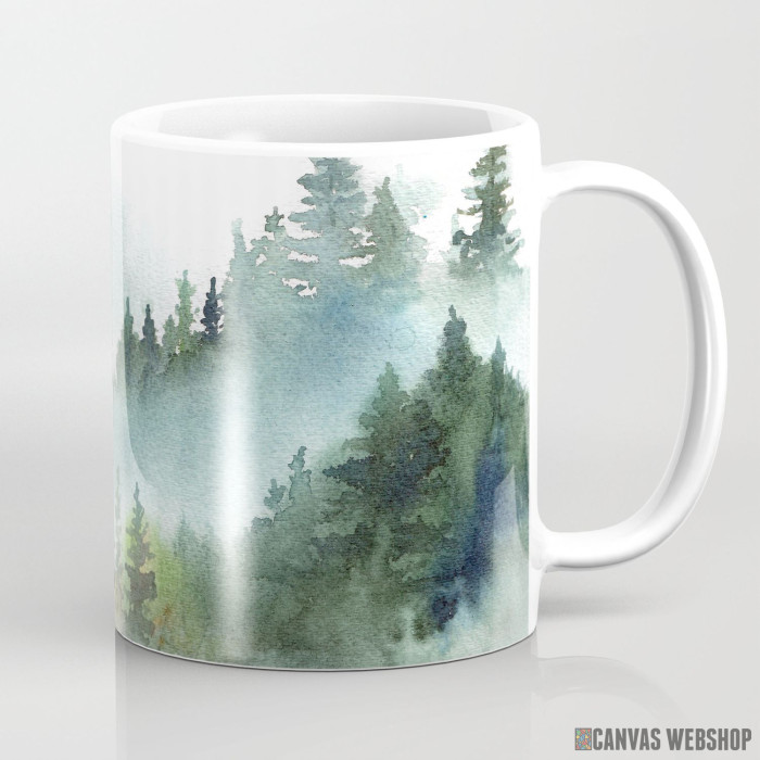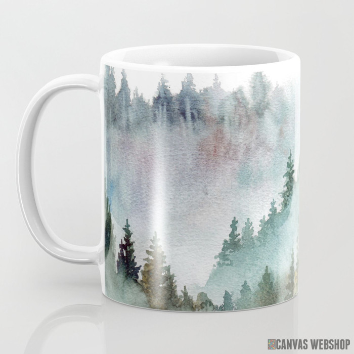 Keramička šolja sa slikom Šuma i planine - vodene boje.