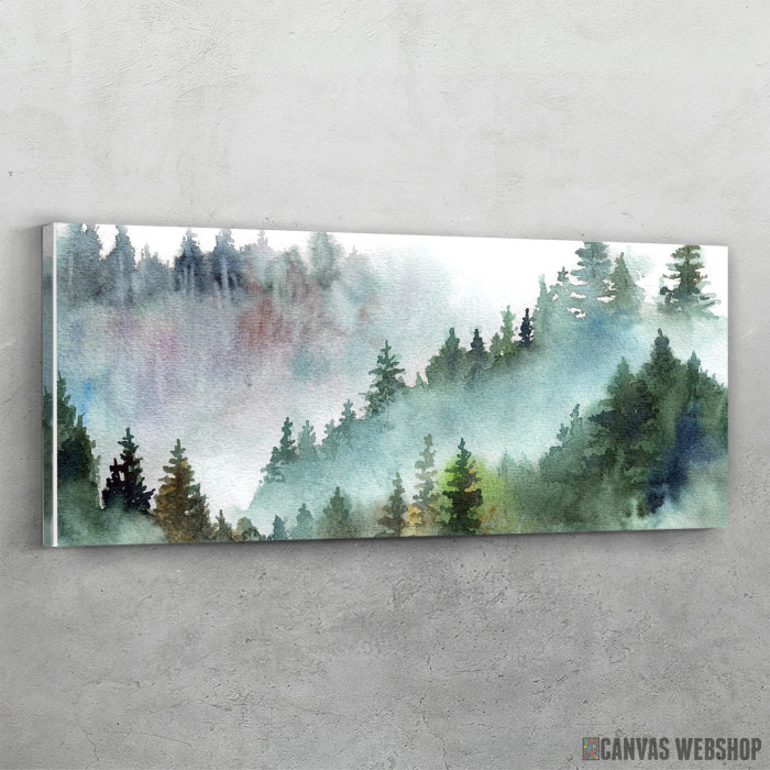 Suma i planine vodene boje je slika odštampana na kvalitetnom pamučnom platnu koje je zategnuto na ram od bukovog drveta. Slika Suma i planine vodene boje je dostupna u različitim dimenzijama.
