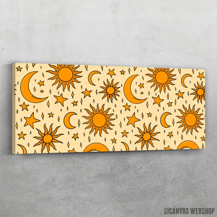 Sunce i zvezde je slika odštampana na kvalitetnom pamučnom platnu koje je zategnuto na ram od bukovog drveta. Slika Sunce i zvezde je dostupna u različitim dimenzijama.
