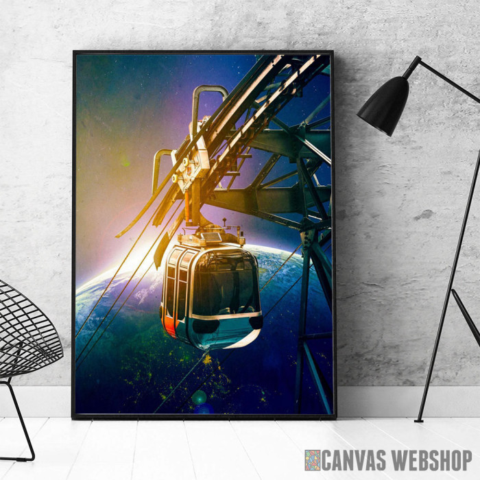 Svemirska gondola je poster odštampan na papiru koji uokviruje elegantan drveni ram sa staklom. Uramljeni poster je dostupan u različitim dimenzijama.