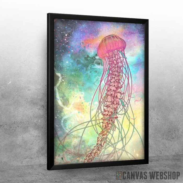 Svemirska meduza je poster odštampan na papiru koji uokviruje elegantan drveni ram sa staklom. Uramljeni poster je dostupan u različitim dimenzijama.