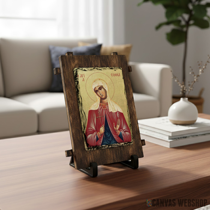 Sveta Sofija, čije ime znači „Božanska mudrost“, predstavlja svetlost razuma, smirenja i duhovne mudrosti. Njena ikona unosi u dom jasnoću, mir i sposobnost donošenja pravilnih odluka. Vernici je doživljavaju kao duhovnu podršku u vreme zbunjenosti, stresa ili važnih životnih koraka. Ikona Svete Sofije podstiče na dublje razumevanje vere i razvijanje unutrašnjeg sklada.Šta dobijate u paketu?
