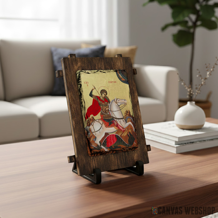 Ikona Svetog Đorđa, jednog od najvoljenijih svetitelja, prikazuje njegovu čuvenu pobedu nad aždajom — simbol pobede dobra nad zlom. Ovaj prizor donosi hrabrost, zaštitu i nadu, inspirišući čoveka da ostane čvrst u veri uprkos svim izazovima. U domu ova ikona stvara atmosferu snage, pravde i Božije pomoći. Čest je poklon za slavu, za zaštitu porodice i za one koji se nalaze pred teškim životnim odlukama.Šta dobijate u paketu?