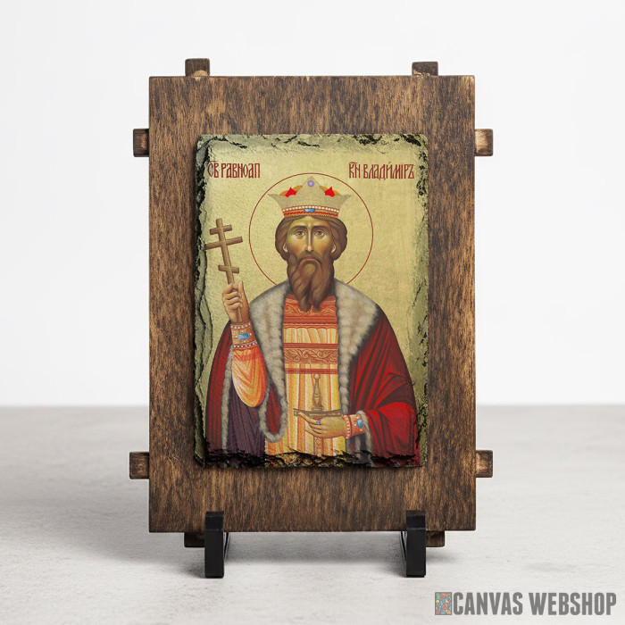 Ikona Svetog Vladimira prikazuje velikog kneza koji je Krštenjem Rusa uveo čitav narod u svetlost hrišćanske vere. Njegov lik simbolizuje duhovnu obnovu, hrabrost i odlučnost da se život preda Bogu. U domu ova ikona donosi mir, veru i stabilnost, naročito onima koji žele da započnu novu duhovnu etapu. Vernici je biraju kao zaštitu porodice i kao podsetnik na moć vere koja može da preobrazi pojedinca i čitav narod. Ikona Svetog Vladimira unosi mir, dostojanstvo i blagoslov u svaki prostor.