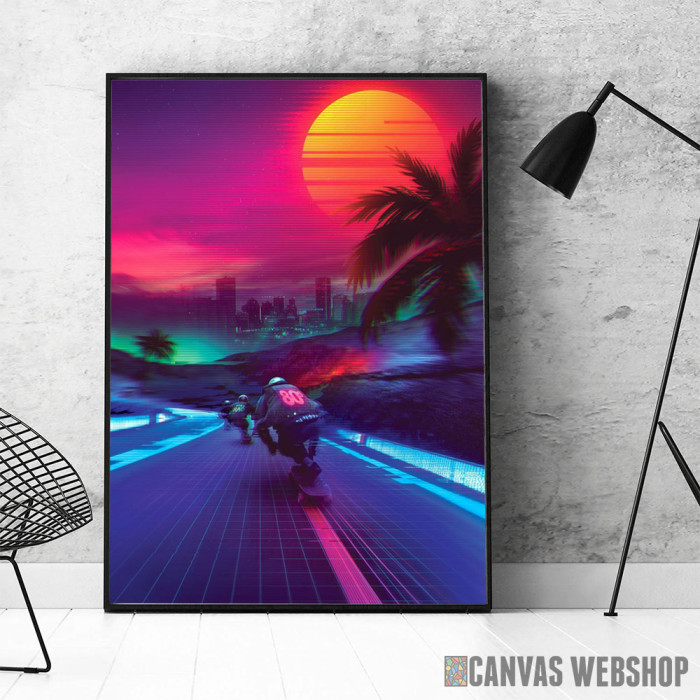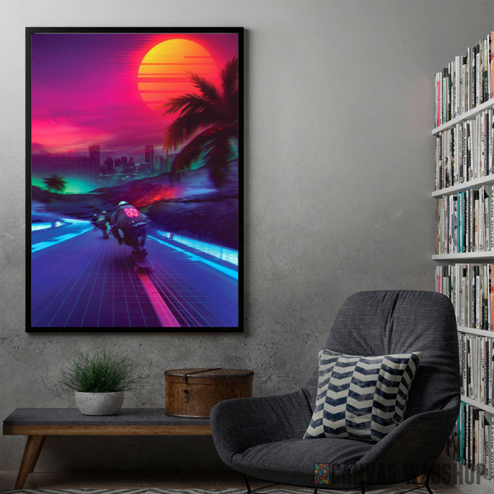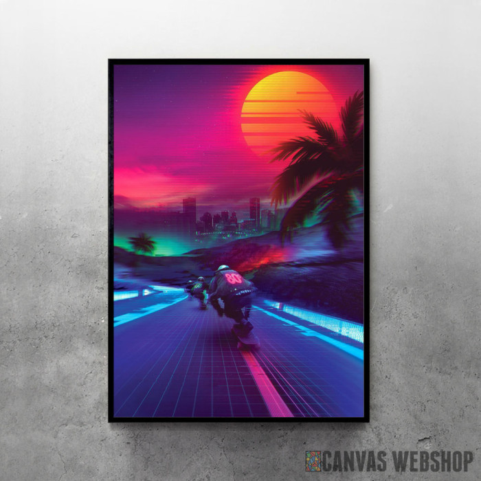 Synthwave Midnight Outrun je poster odštampan na papiru koji uokviruje elegantan drveni ram sa staklom. Uramljeni poster je dostupan u različitim dimenzijama.