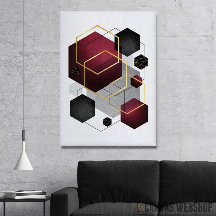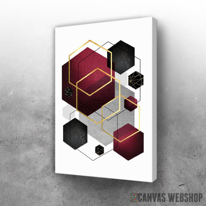 Tamno crveni heksagoni je slika odštampana na kvalitetnom pamučnom platnu koje je zategnuto na ram od bukovog drveta. Slika Tamno crveni heksagoni je dostupna u različitim dimenzijama.