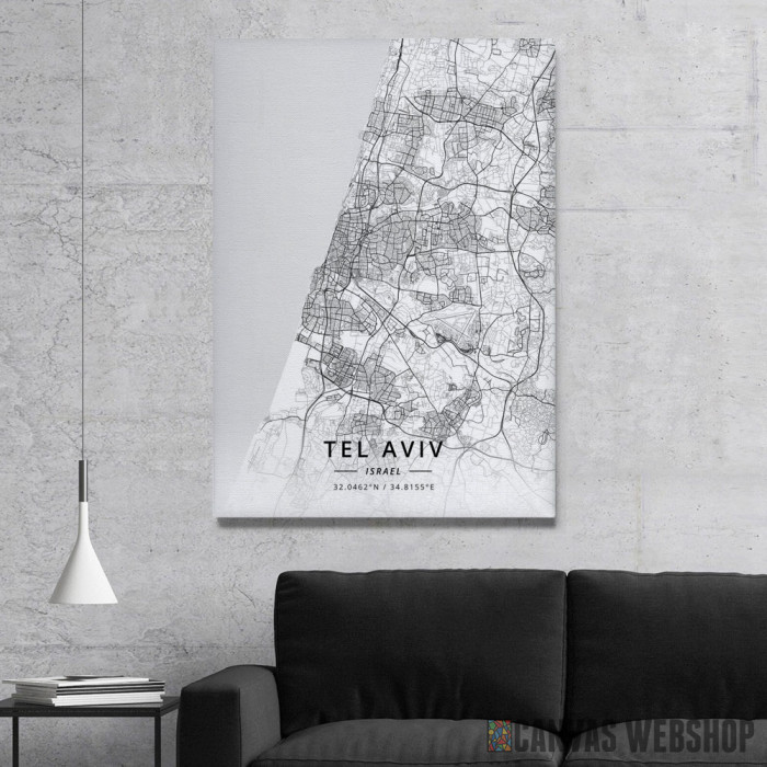 Tel Aviv mapa - white je slika odštampana na kvalitetnom pamučnom platnu koje je zategnuto na ram od bukovog drveta. Slika Tel Aviv mapa - white je dostupna u različitim dimenzijama.