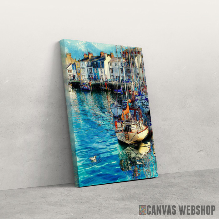 The Harbor je slika odštampana na kvalitetnom pamučnom platnu koje je zategnuto na ram od bukovog drveta. Slika The Harbor je dostupna u različitim dimenzijama.