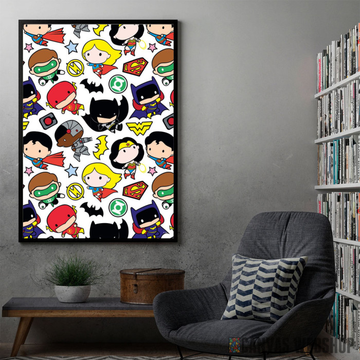Tiny Justice League je poster odštampan na papiru koji uokviruje elegantan drveni ram sa staklom. Uramljeni poster je dostupan u različitim dimenzijama.