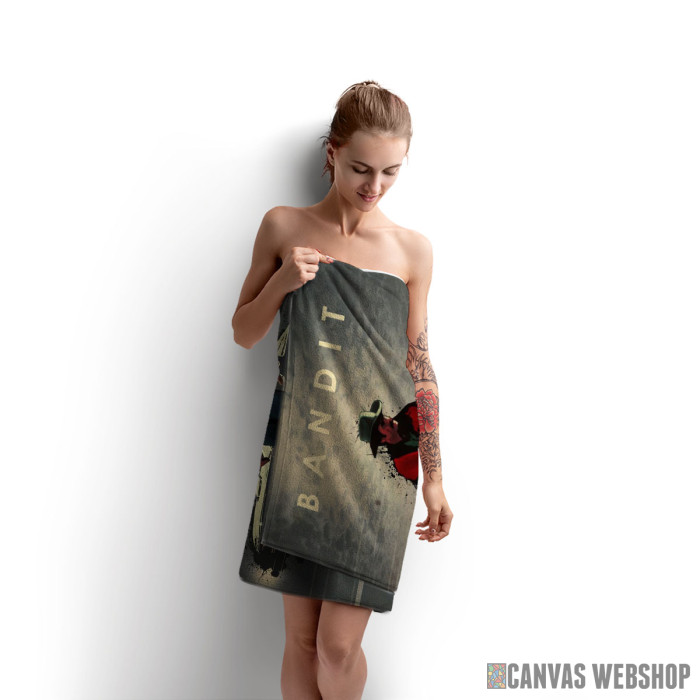 Materijal 60% pamuk (frotir 400g/m2) i 40% poliester (mikrofiber). Štampa je sa prednje strane, odnosno na mikrofiberu, celom površinom. Tehnika štampe je digitalna sublimacija bojama na vodenoj bazi. Urađen je porub po obodu.
