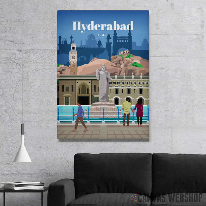 Travel to Hyderabad je slika odštampana na kvalitetnom pamučnom platnu koje je zategnuto na ram od bukovog drveta. Slika Travel to Hyderabad je dostupna u različitim dimenzijama.