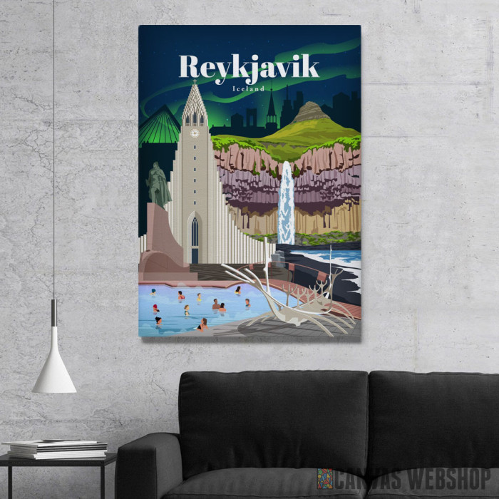 Travel to Iceland je slika odštampana na kvalitetnom pamučnom platnu koje je zategnuto na ram od bukovog drveta. Slika Travel to Iceland je dostupna u različitim dimenzijama.