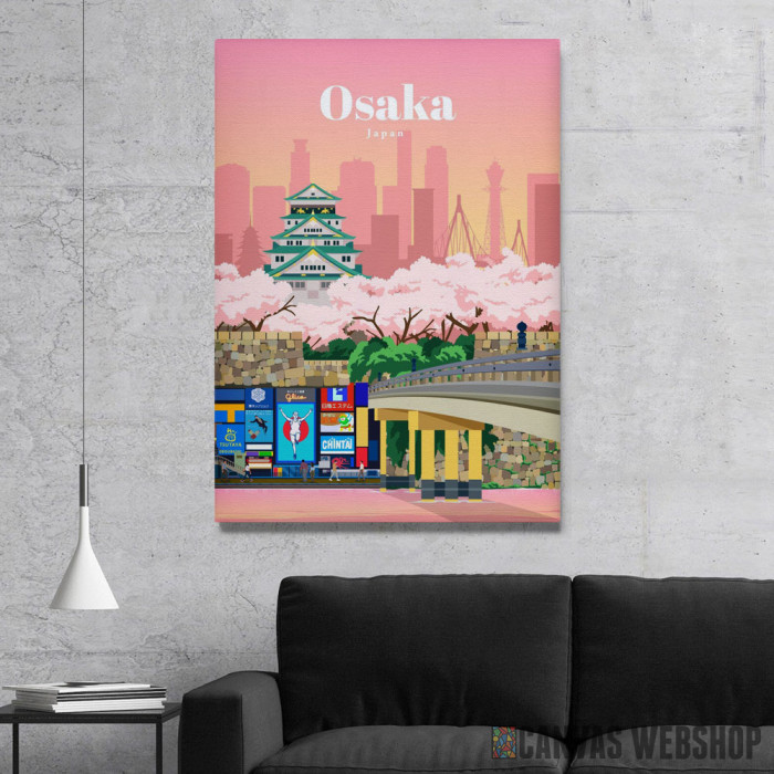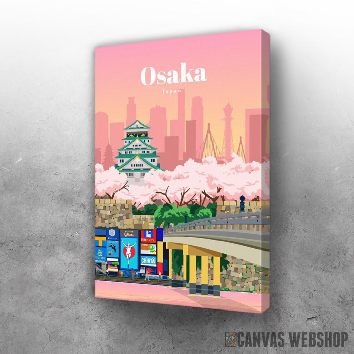 Travel to Osaka je slika odštampana na kvalitetnom pamučnom platnu koje je zategnuto na ram od bukovog drveta. Slika Travel to Osaka je dostupna u različitim dimenzijama.