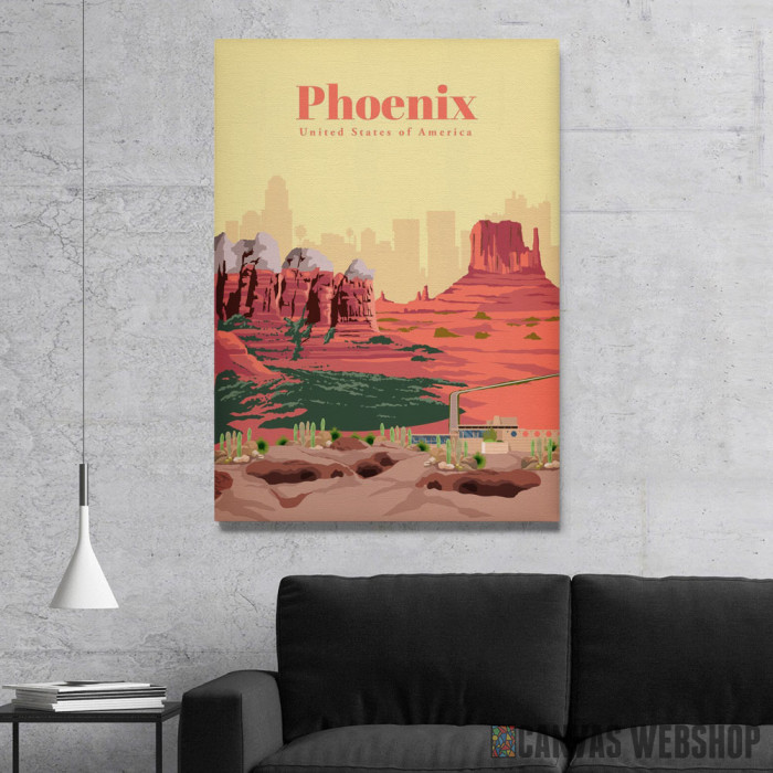 Travel to Phoenix je slika odštampana na kvalitetnom pamučnom platnu koje je zategnuto na ram od bukovog drveta. Slika Travel to Phoenix je dostupna u različitim dimenzijama.