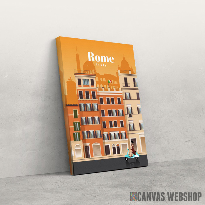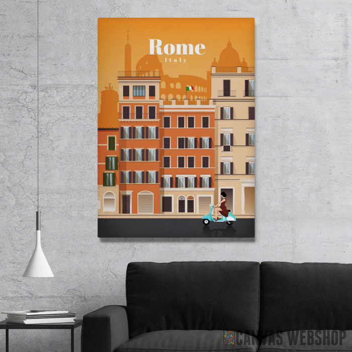 Travel to Rome je slika odštampana na kvalitetnom pamučnom platnu koje je zategnuto na ram od bukovog drveta. Slika Travel to Rome je dostupna u različitim dimenzijama.