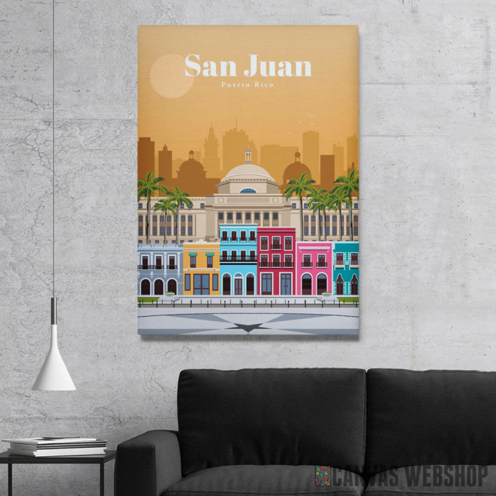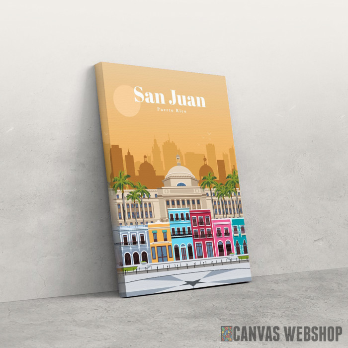 Travel to San Juan je slika odštampana na kvalitetnom pamučnom platnu koje je zategnuto na ram od bukovog drveta. Slika Travel to San Juan je dostupna u različitim dimenzijama.