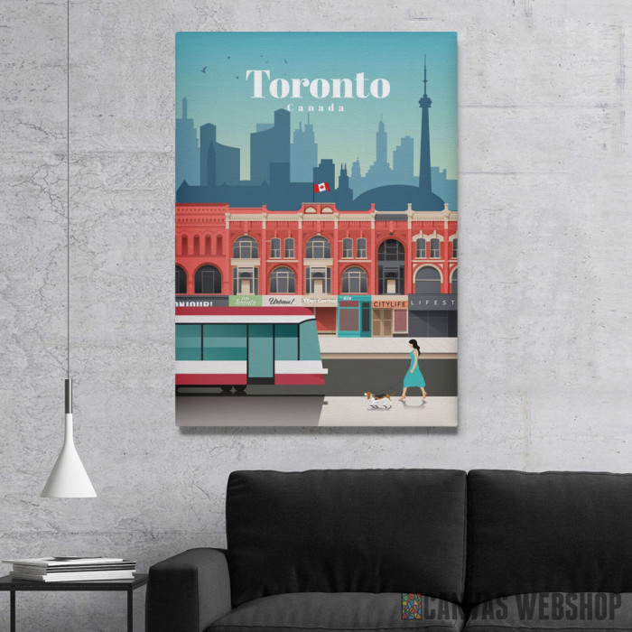 Travel to Toronto je slika odštampana na kvalitetnom pamučnom platnu koje je zategnuto na ram od bukovog drveta. Slika Travel to Toronto je dostupna u različitim dimenzijama.