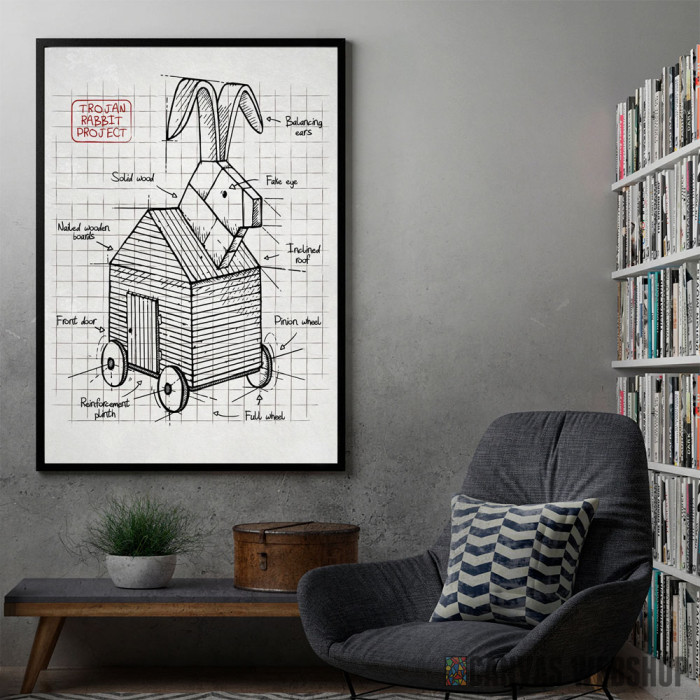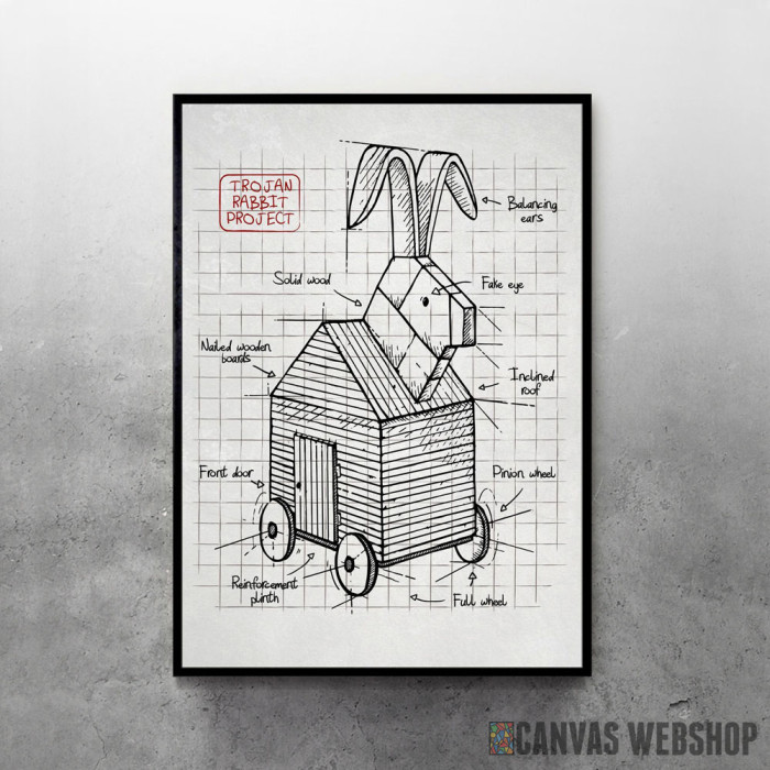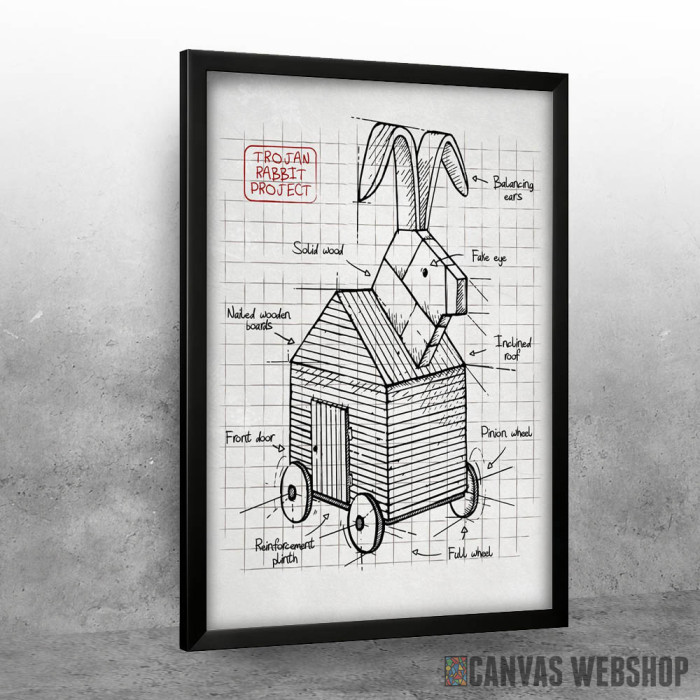 Trojan Rabbit Project je poster odštampan na papiru koji uokviruje elegantan drveni ram sa staklom. Uramljeni poster je dostupan u različitim dimenzijama.