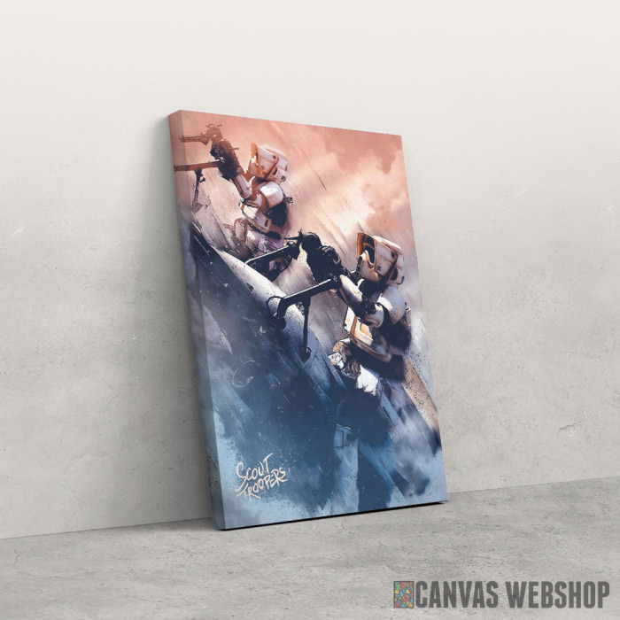 Troopers je slika odštampana na kvalitetnom pamučnom platnu koje je zategnuto na ram od bukovog drveta. Slika Troopers je dostupna u različitim dimenzijama.