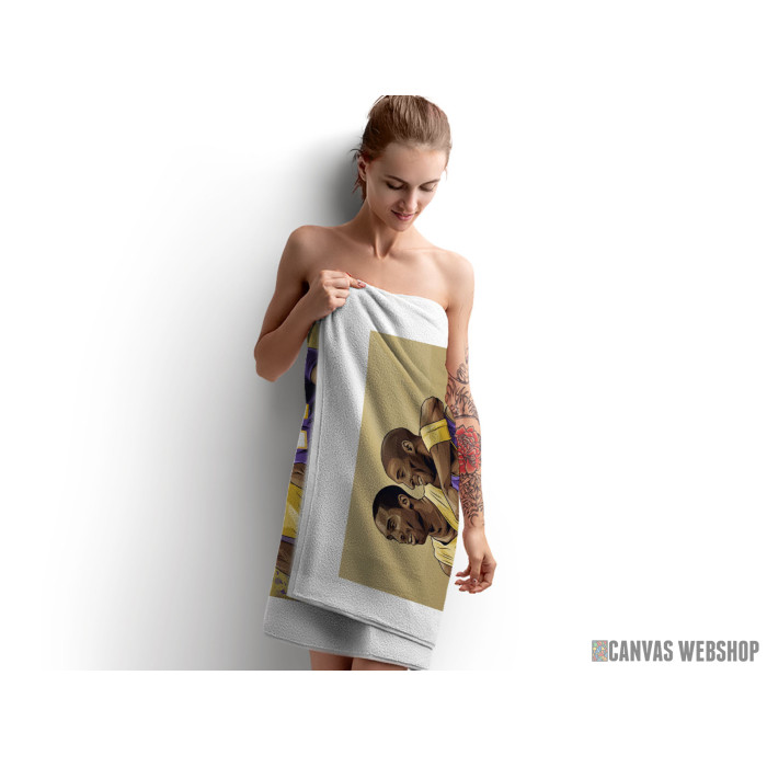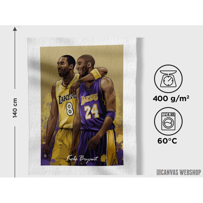 Materijal 60% pamuk (frotir 400g/m2) i 40% poliester (mikrofiber). Štampa je sa prednje strane, odnosno na mikrofiberu, celom površinom. Tehnika štampe je digitalna sublimacija bojama na vodenoj bazi. Urađen je porub po obodu.