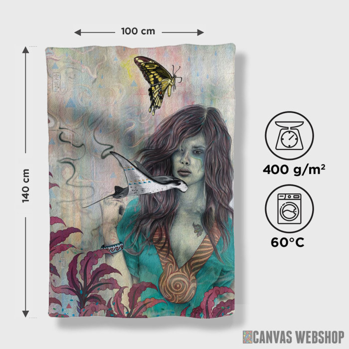 Štaviše, sa mikrofiberom na drugoj strani, boje ostaju jarke i postojane, pružajući vam estetski užitak koji traje. Sa dimenzijama 100x140 cm, pruža dovoljno prostora za potpuno bezbrižno uživanje.