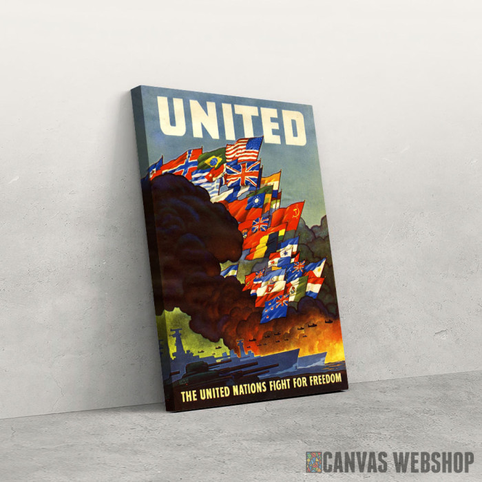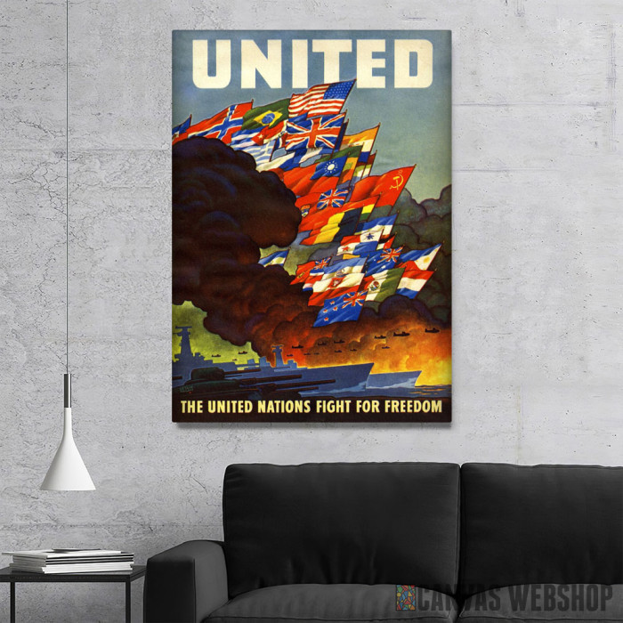 United nations fight for freedom je slika odštampana na kvalitetnom pamučnom platnu koje je zategnuto na ram od bukovog drveta. Slika United nations fight for freedom je dostupna u različitim dimenzijama.
