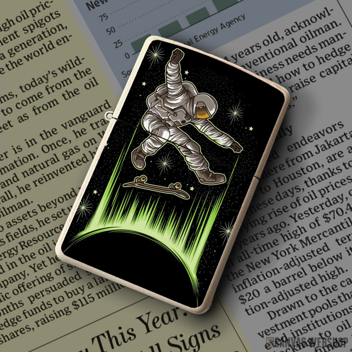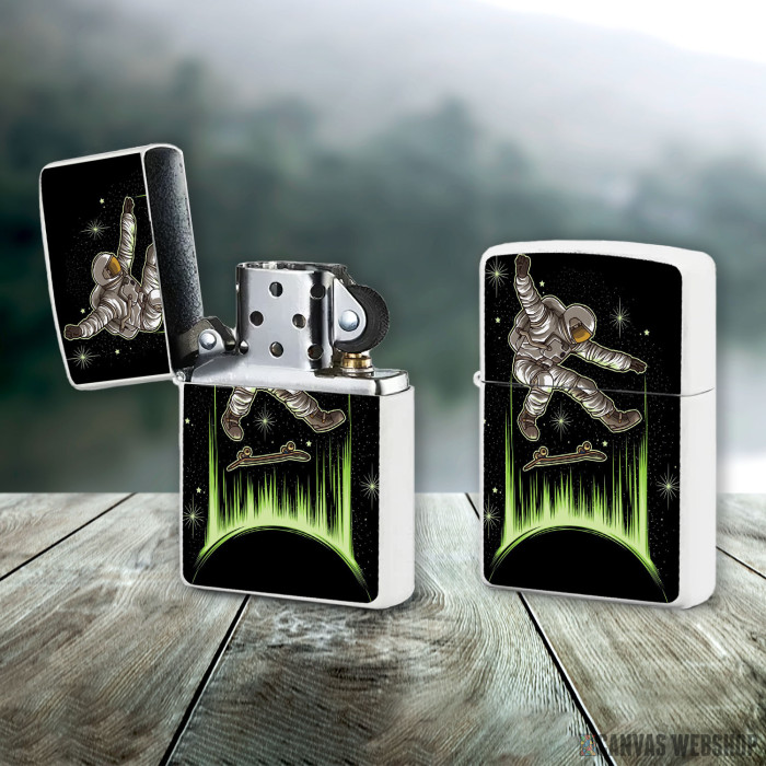 Metalni vetrootporni upaljač sa slikom Astronaut na skejtu kao dobar poklon ili vaš pratilac za sve prilike!