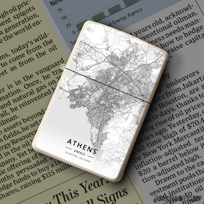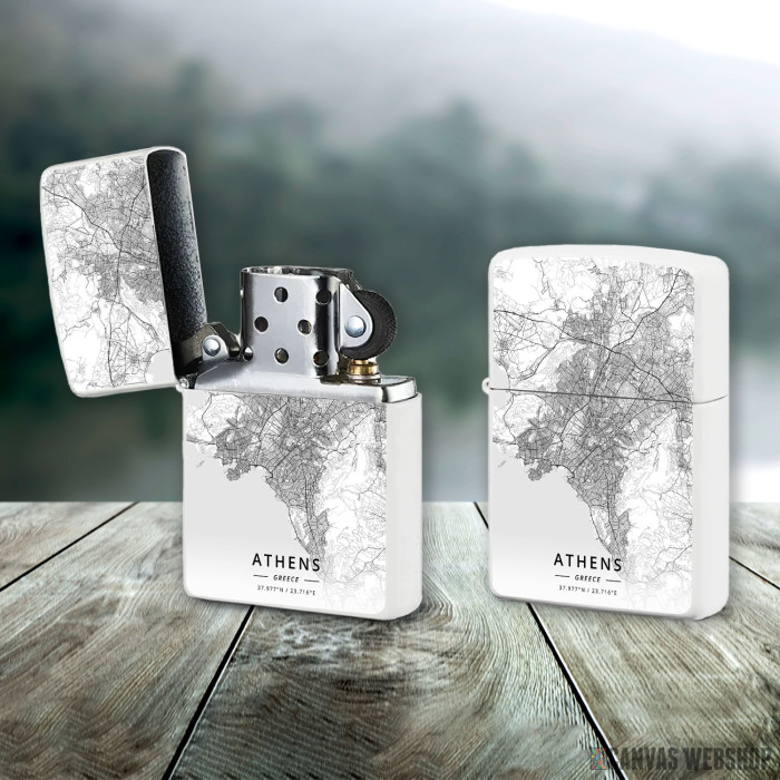 Metalni vetrootporni upaljač sa slikom Atina mapa - white kao dobar poklon ili vaš pratilac za sve prilike!