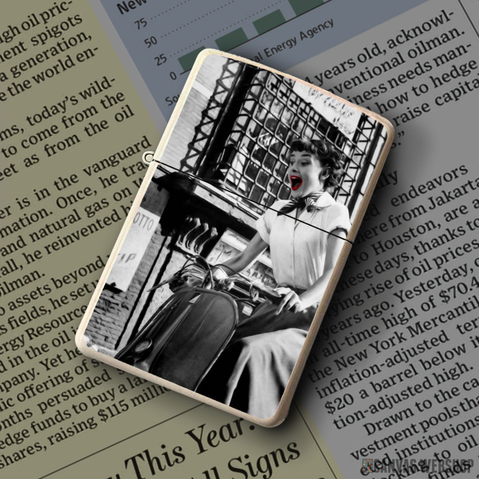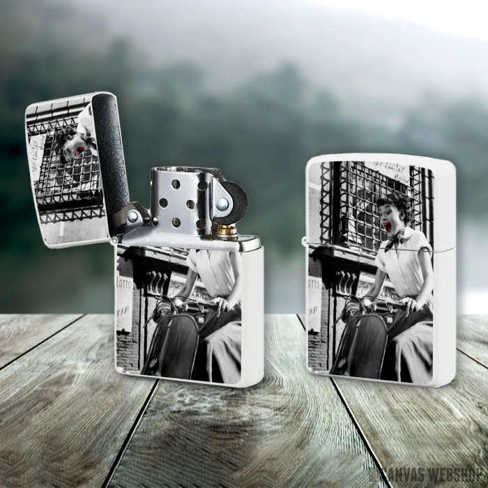 Metalni vetrootporni upaljač sa slikom Audrey Hepburn Lips Red 2 kao dobar poklon ili vaš pratilac za sve prilike!