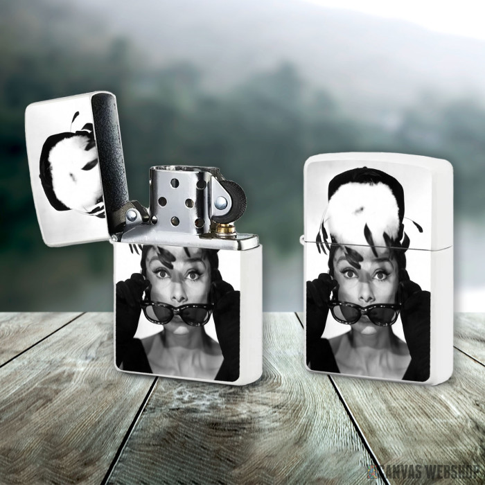 Metalni vetrootporni upaljač sa slikom Audrey Hepburn With Hat kao dobar poklon ili vaš pratilac za sve prilike!