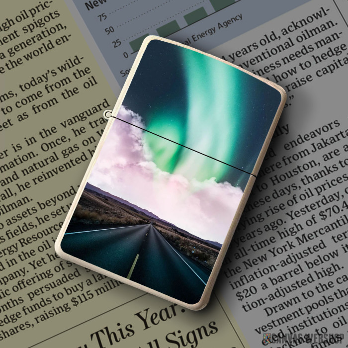 Metalni vetrootporni upaljač sa slikom Aurora road kao dobar poklon ili vaš pratilac za sve prilike!