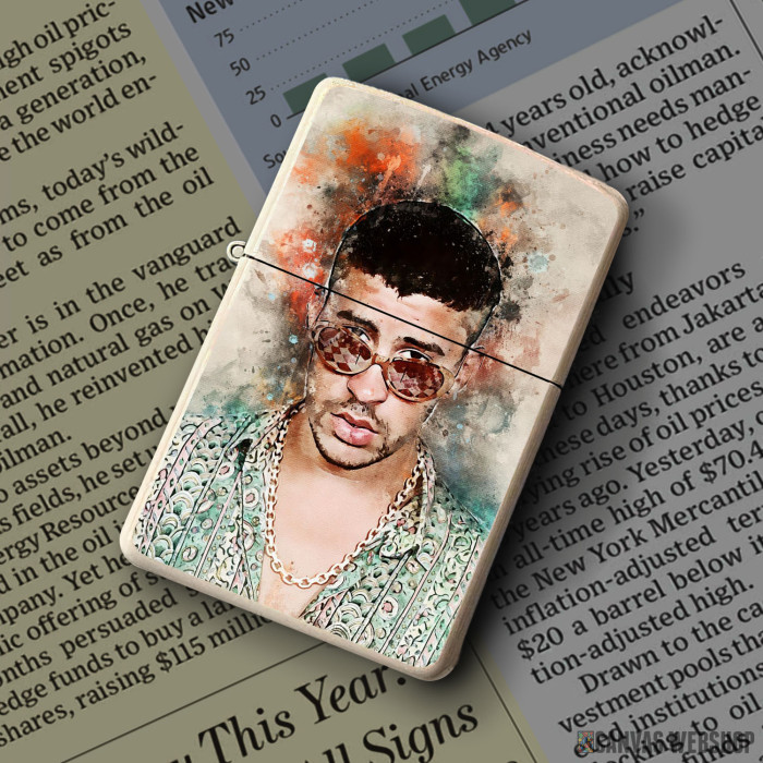 Metalni vetrootporni upaljač sa slikom Bad Bunny kao dobar poklon ili vaš pratilac za sve prilike!