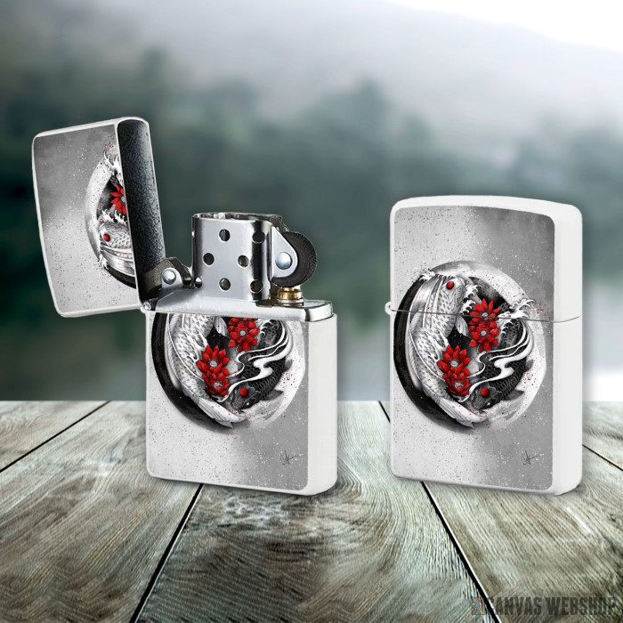 Metalni vetrootporni upaljač sa slikom Balance [ Yin-yang koi] kao dobar poklon ili vaš pratilac za sve prilike!