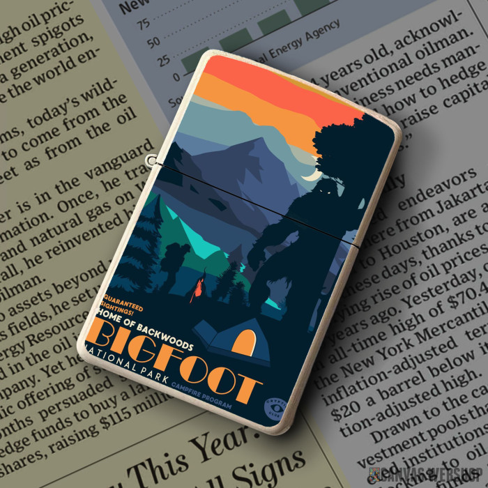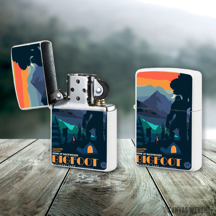 Metalni vetrootporni upaljač sa slikom Bigfoot Natural Park kao dobar poklon ili vaš pratilac za sve prilike!