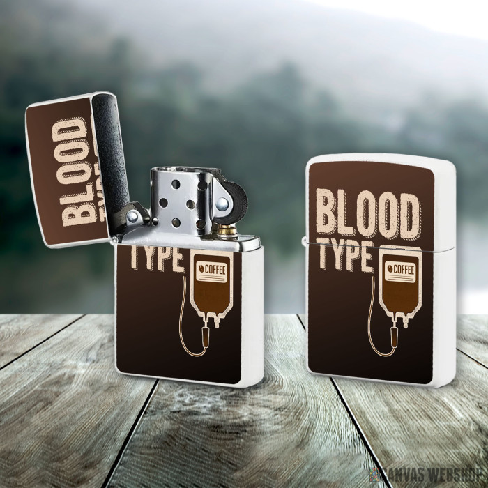 Metalni vetrootporni upaljač sa slikom Blood Type Coffee kao dobar poklon ili vaš pratilac za sve prilike!