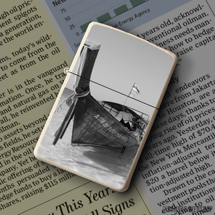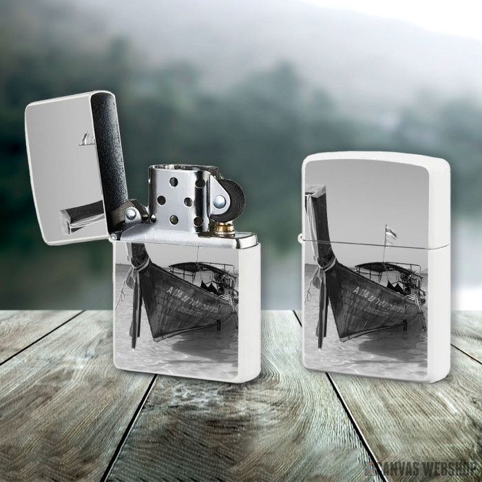 Metalni vetrootporni upaljač sa slikom Boat On Shore kao dobar poklon ili vaš pratilac za sve prilike!