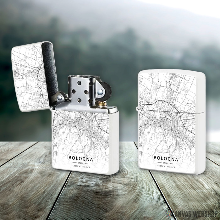 Metalni vetrootporni upaljač sa slikom Bolonja mapa - white kao dobar poklon ili vaš pratilac za sve prilike!