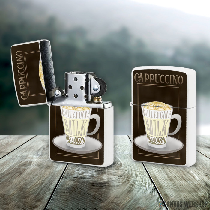 Metalni vetrootporni upaljač sa slikom Cappuccino Coffee kao dobar poklon ili vaš pratilac za sve prilike!