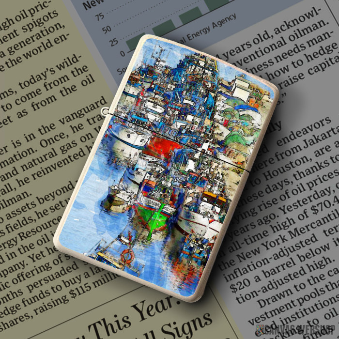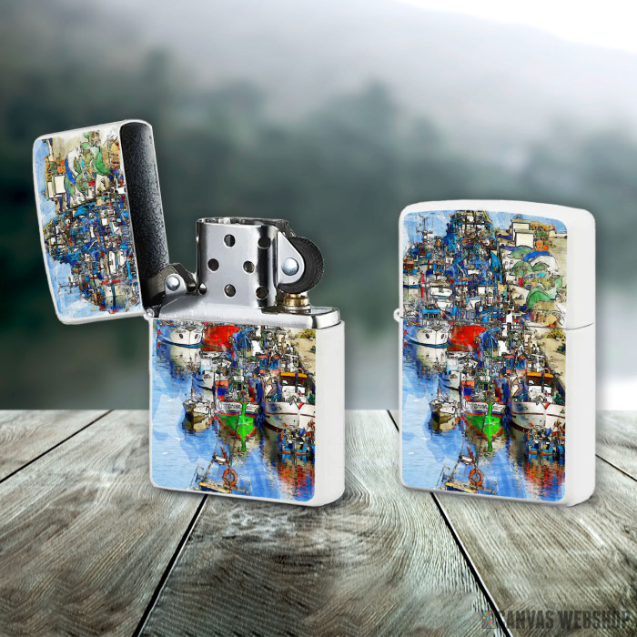 Metalni vetrootporni upaljač sa slikom Crowded Sea Port kao dobar poklon ili vaš pratilac za sve prilike!