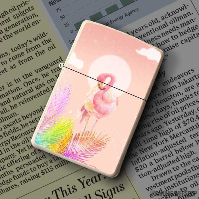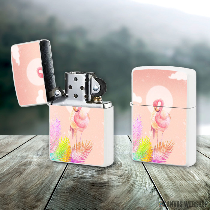 Metalni vetrootporni upaljač sa slikom Flamingo Bird with leaves kao dobar poklon ili vaš pratilac za sve prilike!