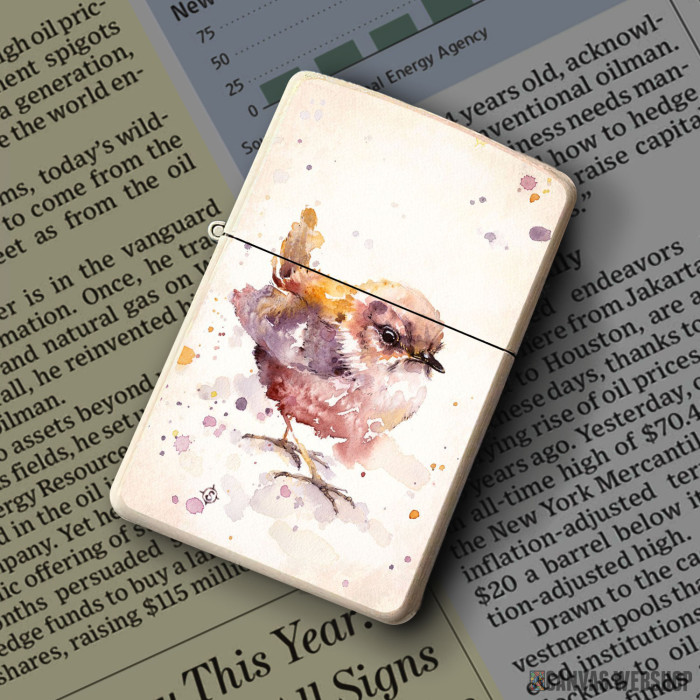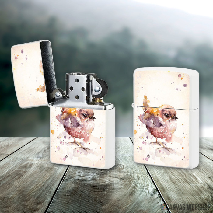 Metalni vetrootporni upaljač sa slikom Fluffy Le Wren Water Colour Art kao dobar poklon ili vaš pratilac za sve prilike!